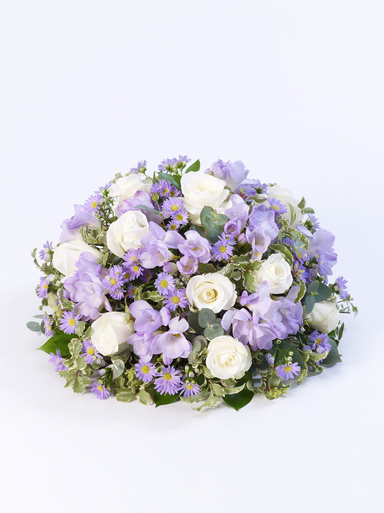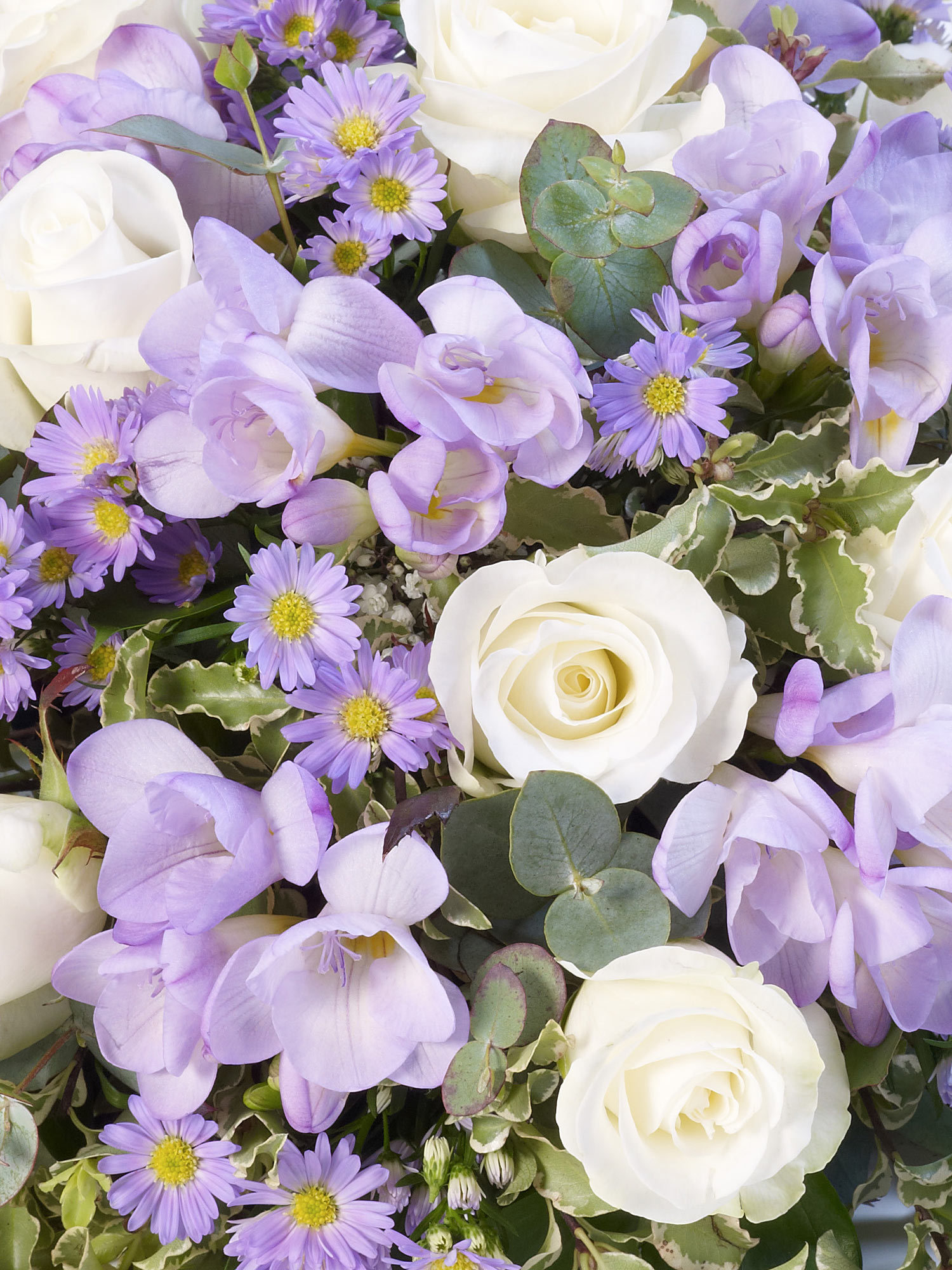A beautiful scented posy including scented freesias, roses and september flower in either soft lilac and white or soft pink and white.