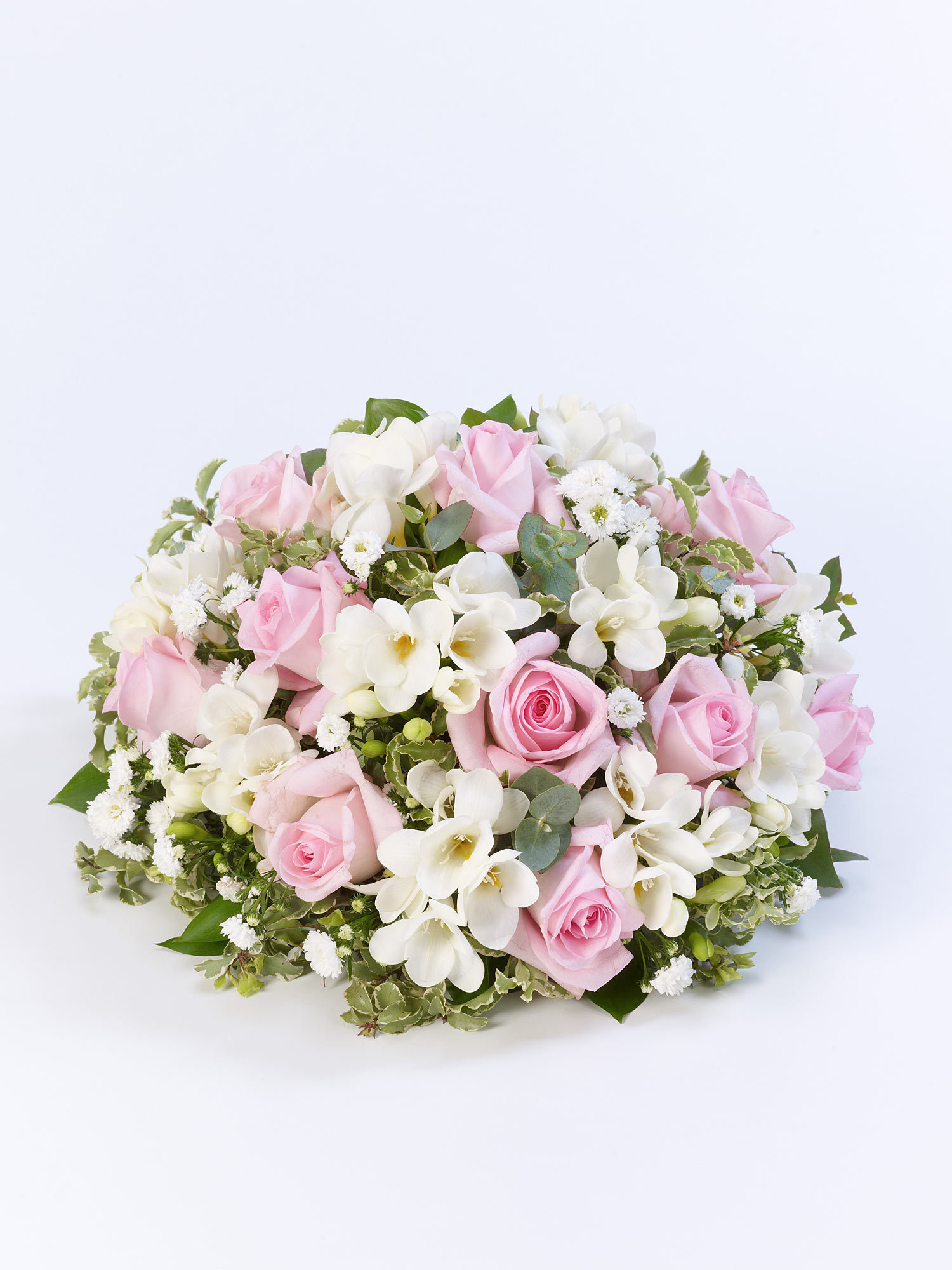 A beautiful scented posy including scented freesias, roses and september flower in either soft lilac and white or soft pink and white.